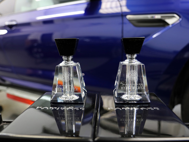 Kamikaze Collection is a Japanese designer and manufacturer of innovative car care solutions. Each product has been engineered to tackle a specific challenge faced by detailers, challenges other car care manufacturers have yet to address. Kamikaze Collection’s mission is to create products that bring something new to the industry, rather than releasing like for like versions of similar existing products. Their ethos is quintessentially Japanese: they adopt the ‘kaizen’ method, striving to make continual improvements throughout the range. ENREI is a prime example: it’s a two-stage protection system using two layers that complement each other and work in harmony to boost protection for paintwork while adding gloss. No.1 Base Coat has been engineered to penetrate clear coats to bond securely and have a high chemical affinity for the No.2 Top Coat, effectively cementing the two layers together. The result is a closely bonded protective layer that better repels not only water and contamination but also inhibits the formation of water spotting – a common issue with many other ceramic coatings.