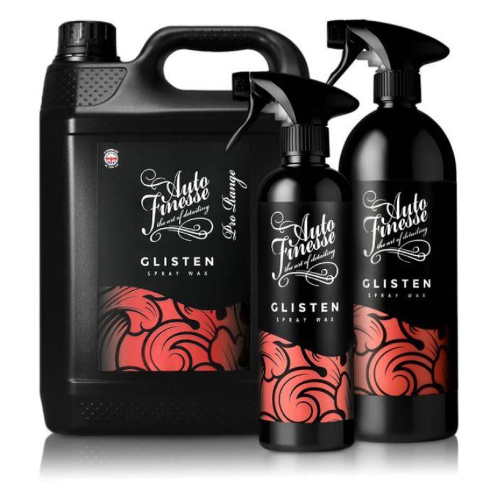Auto Finesse Glisten is an advanced spray wax which uses a solvent-based solution to enable the product to act as an extremely effective finishing product. Providing durability of up to 4 weeks and a high-gloss finish to go with it, Glisten can be used as a stand-alone product or a top-up to previously-applied protection layers. Perfect for those with little time or for treating hard to reach areas. A simple spray and wipe formula that is suitable for all paint finishes, including matte paint and wraps.