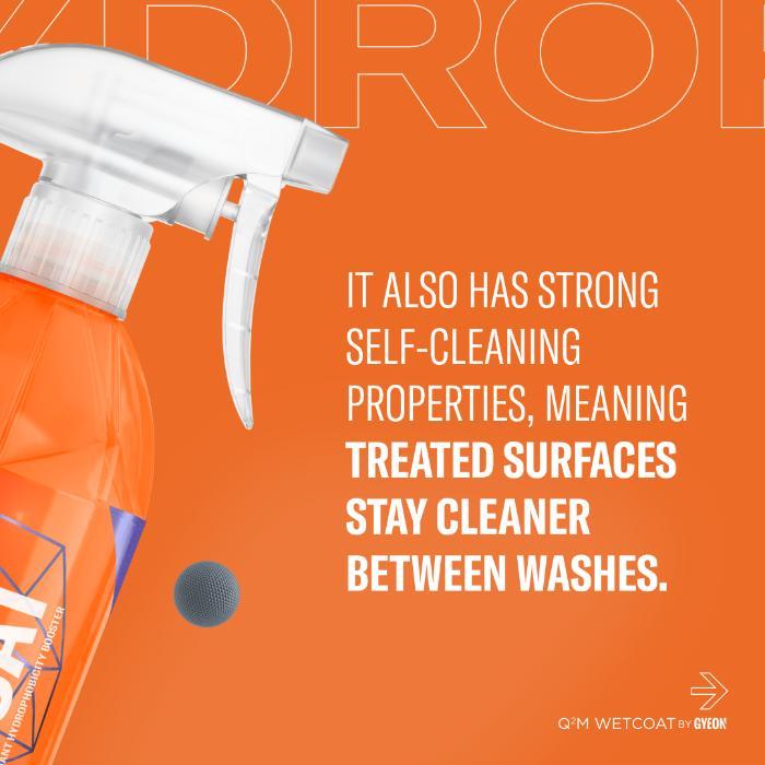 Pro Tip Rinse Q²M WetCoat immediately. Don’t wait for the product to dwell or react—the reaction happens while you rinse it. Do not spread it with mitts or towels; this is not necessary.