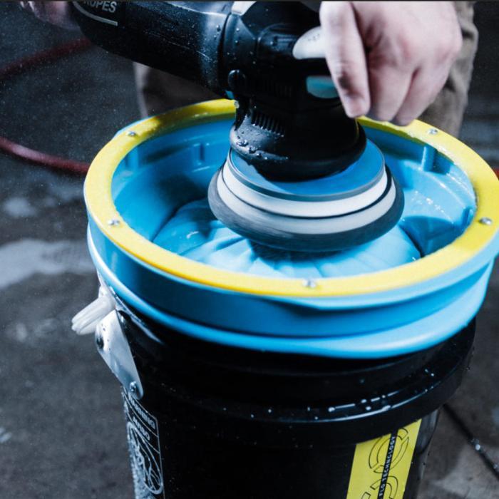 - Insert Pad: Attach the soiled pad to your polisher and place it onto the ribbed wash plate.