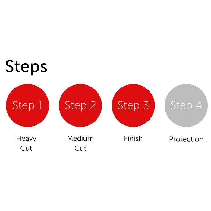 Worked over a shorter period of time, the abrasive particles diminish to produce a high gloss finish on hard and scratch-resistant paintworks. Diminishing abrasives as in the name get smaller as they are “worked in”. This allows a compound to start with a higher level of cut with a larger abrasive. As the compound is worn down by the pad and machine polisher, it becomes smaller and smaller, resulting in a finer finish.