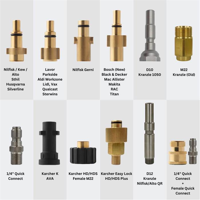 Find the correct pressure washers lance adapters for upgrading previous hardware such as foam cannons, foam lances, extension lances, patio cleaners etc.